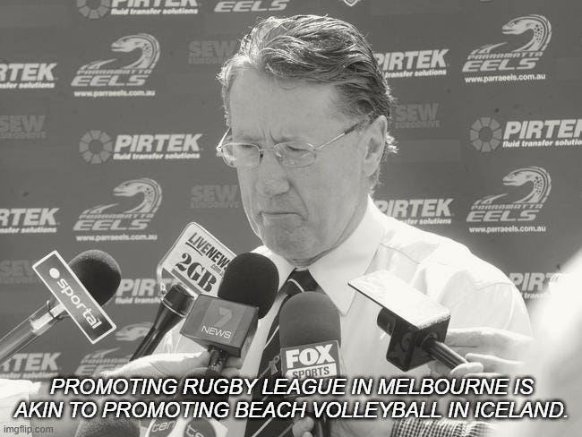 Plus the “compensation” that Parramatta decided to take the moral high ground against is the equivalent of a nice little corporate sponsorship for a team that is accepting money from one of the worst corporate criminals in Australian history. Maybe they’re still huffing asbestos on O’Connor Street.