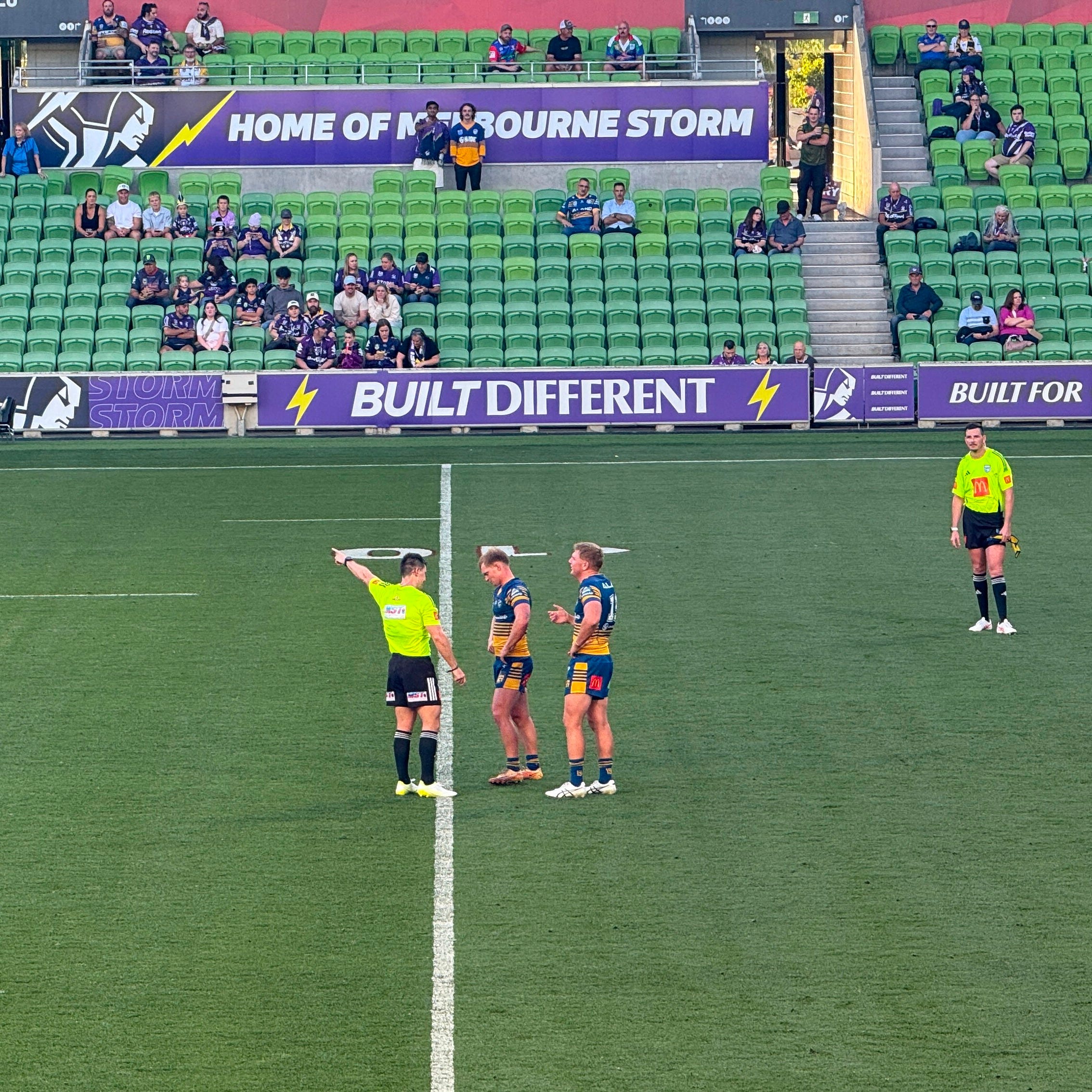 I guess the issue is that almost all of them were justified. Already under fatigue down a player, Parramatta gave up two ruck infringements within seconds,2 and just before Hopgood returned to the field, Melbourne put on two expansive sweeping plays.