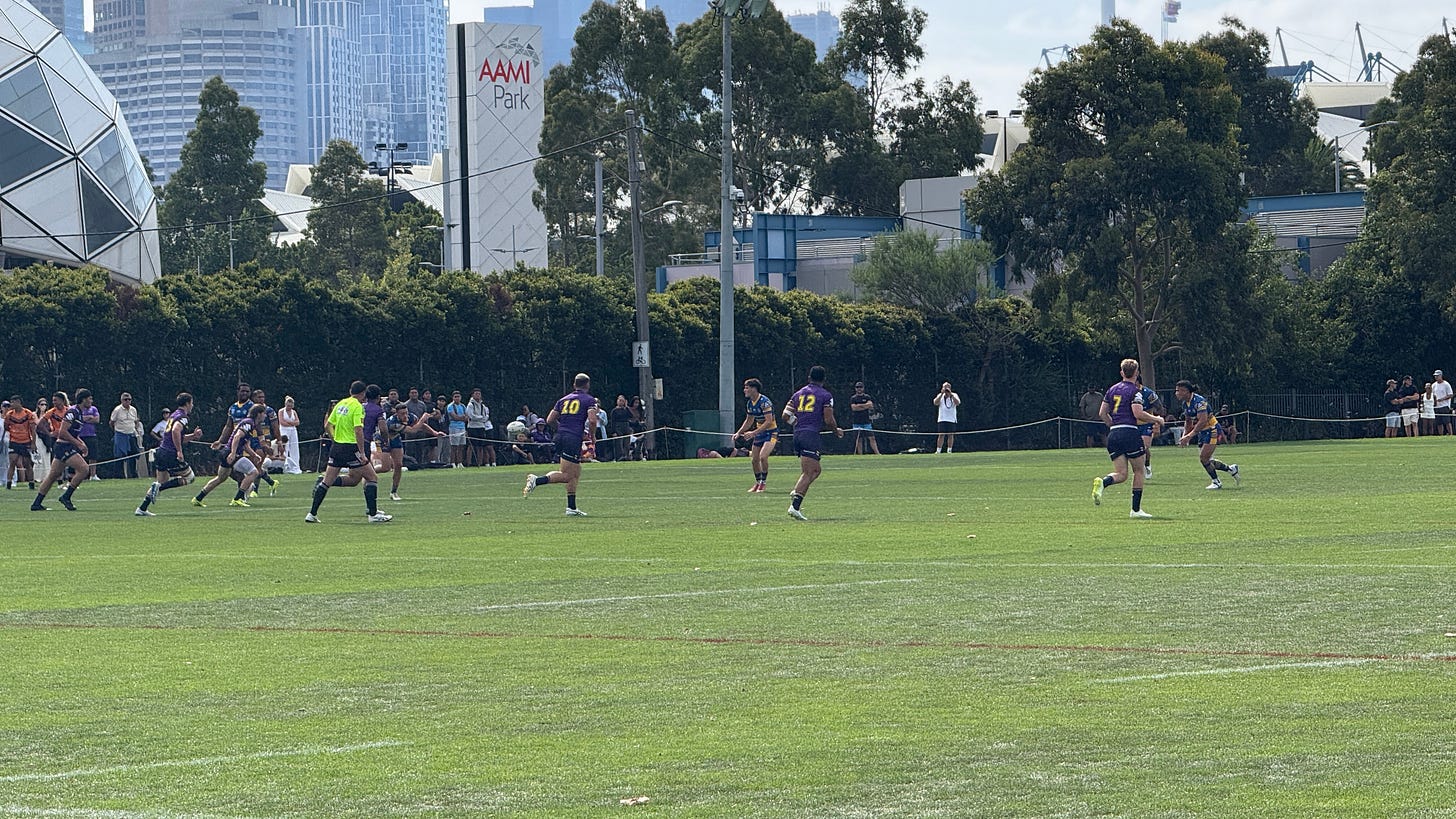 Before the main game on Thursday night, the Melbourne Storm ran out a team in the NSW Cup for the first time in 5,653 days. It’s only a little off-putting seeing a NSWRL logo on a Storm jersey, but it is nice to get in to AAMI Park to see a meaningful curtain raiser again.