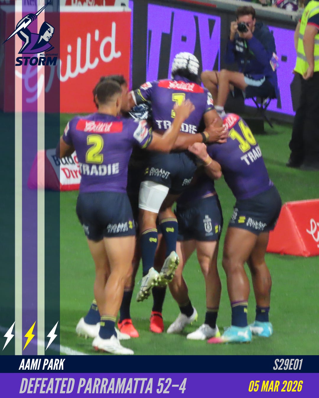 The final score of 52–4 is a Melbourne Storm scorigami. This was just the second match in the NRL era to end with that scoreline.