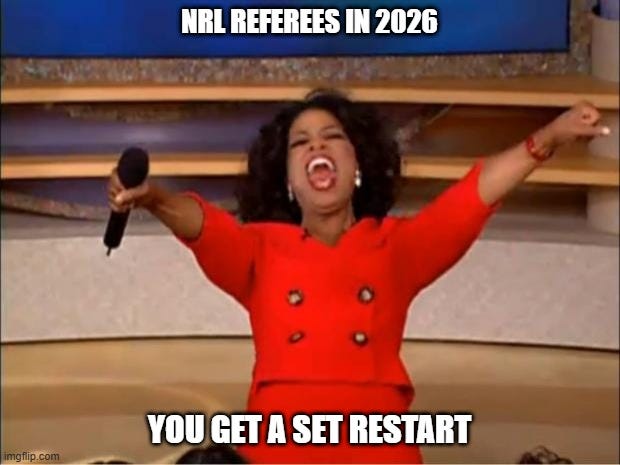 North Queensland shredded Melbourne through the middle, then shifted left to score through Sam McIntyre to cut the margin to four points. On the restart, Sutton intervened on fourth tackle with a set restart decision that can only be described as the equivalent to a Joel Wilson lbw decision where the batter has smashed it into their pads.5 It was as close to match fixing as Sutton has pulled against Melbourne since Magic Round last year. No player should bother making a legs tackle in 2026 knowing what the referees are calling now as ruck interference.