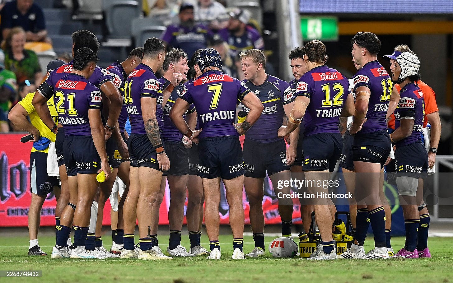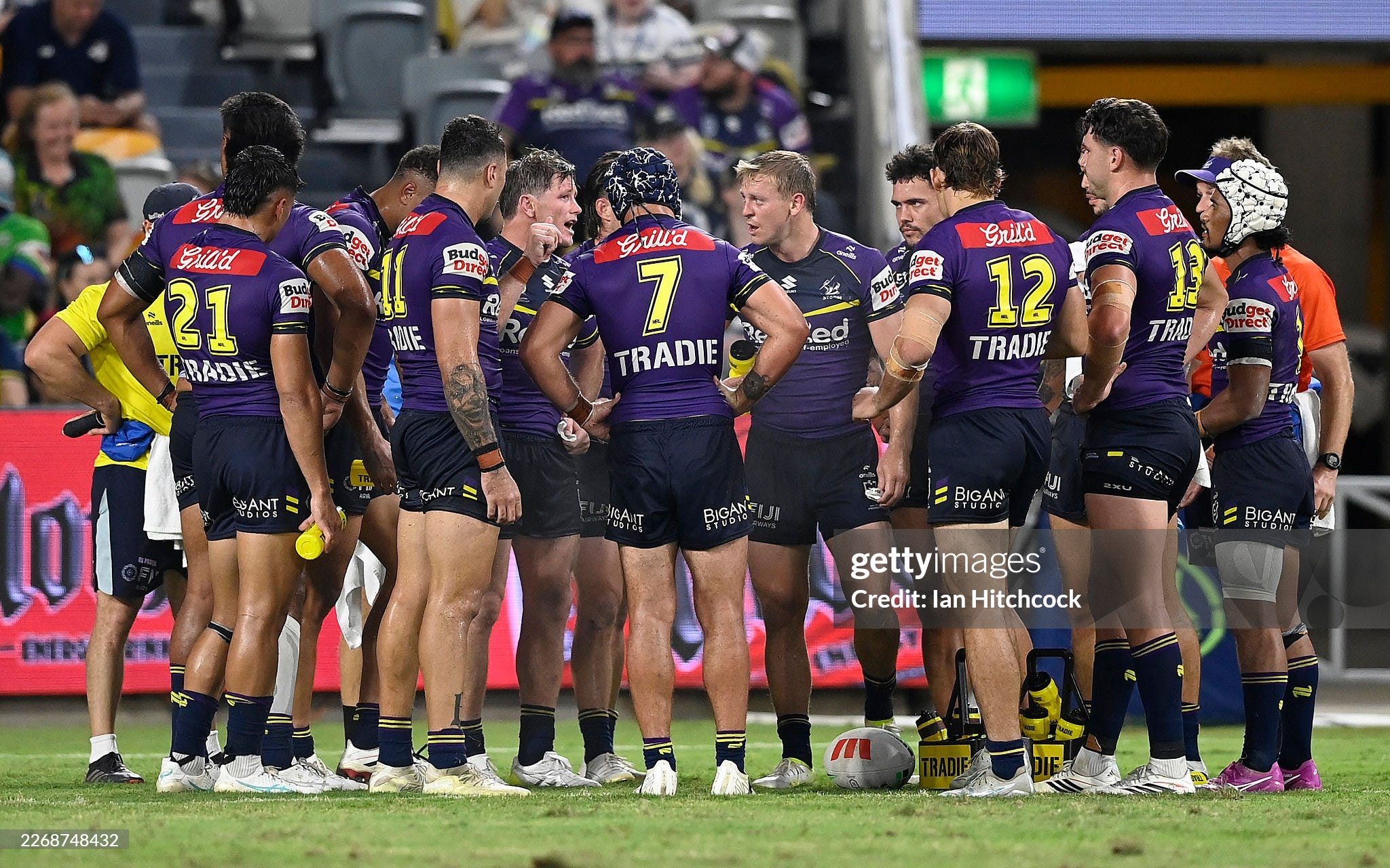 The one type of match that Melbourne could least afford to get into against the Cowboys was a shootout. So of course North Queensland scored next. The home team benefitting from the same generosity Sutton showed Melbourne in the first half, calling a set restart on fifth tackle for reasons, capitalising on an error from Fa’alogo, and another intervention from Sutton, scoring a try from scrum play, Taulagi getting on the end of a passing move outside Warbrick to get one back for the Cowboys.